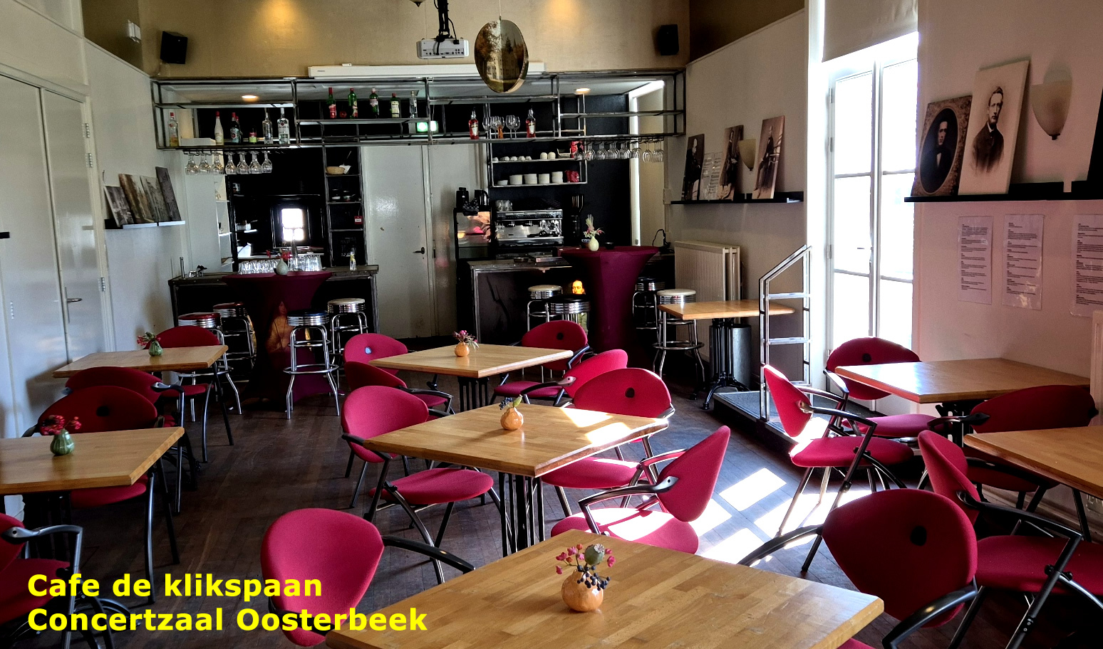 De Klikspaan is een cafe aan het terras van de Concertzaal Oosterbeek. Het biedt in de historische omgeving plaats aan zo’n 50 gasten aan 10 tafels en voor een receptie kunnen er 80 gasten worden ontvangen. De Klikspaan beschikt over een eigen audio en video installatie voor een goede presentatie.